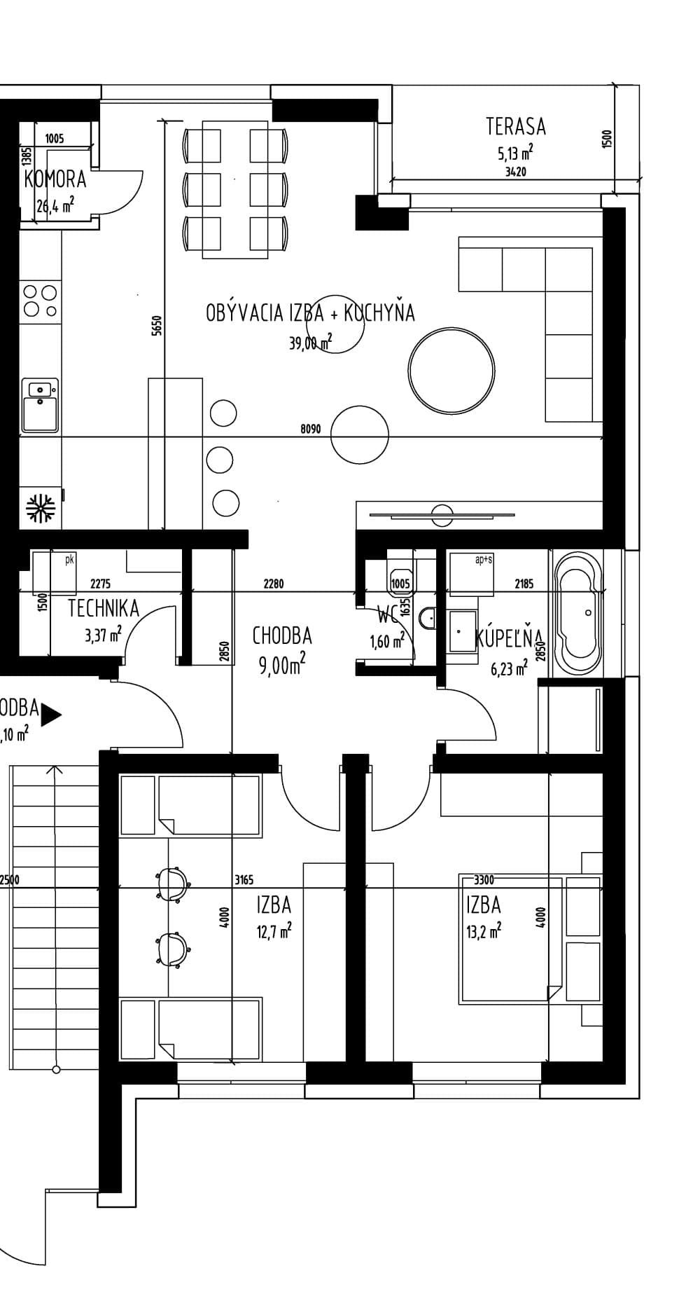 Počet izieb:3+kk